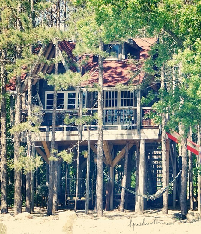 Serving as the homely office retreat of designer and blogger Lynne Knowlton, this rustic treehouse is located near the Canadian town of Durham, Ontario. The eco-friendly structure was conceived by Knowlton herself and was constructed using exclusively salvaged materials, including tin taken from a barn for the rear walls and various vintage elements - among the latter, some French doors. A pair of hammocks found on the treehouse’s front balcony are perfect for downtime or brainstorming ideas, while a kitchenette, a bathroom, and an attic with a comfortable queen-sized bed can also be enjoyed within. When not utilizing the treehouse as a personal workspace, Knowlton rents it out from early June to late September.